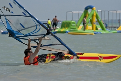 Einer derschönsten und beliebtesten Strände an der Balatonküste erwartet seine Gäste mit einem bunten Angebot an Dienstleistungen, mehr als einen halben Kilometer lang. Neben dem zum Baden ausgewiesenen sicheren Wasserbereich erwartet die Kleinen ein Sandstrand, damit auch sie ungestört plantschen können. Wenn den Kindern das Wasser zu langweilig wird, werden sie sicherlich auf den Spielplätzen beschäftigt sein.